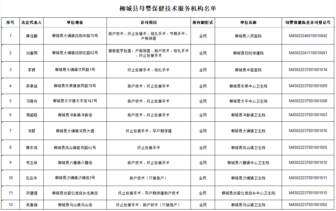 柳城縣母嬰保健技術(shù)服務(wù)機(jī)構(gòu)名單