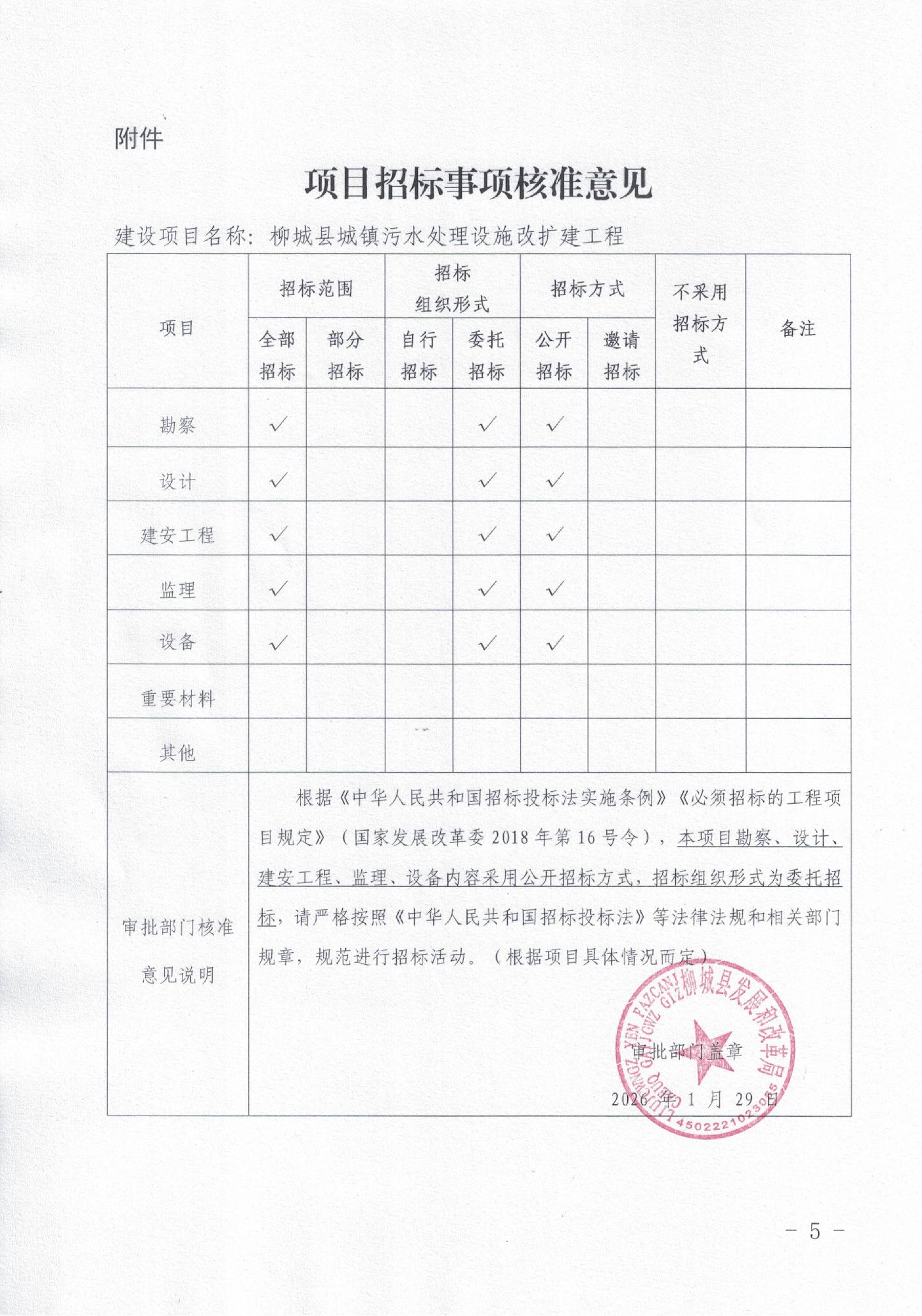關(guān)于柳城縣城鎮(zhèn)污水處理設(shè)施改擴(kuò)建工程可行性研究報(bào)告的批復(fù)