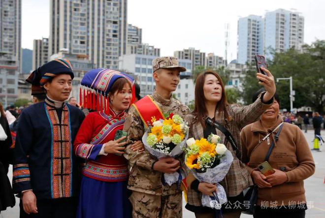 新兵與縣領(lǐng)導(dǎo)在現(xiàn)場(chǎng)合影留念。